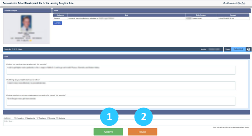 - An email will then be sent to the Student to notify them that their pathway has been approved. - If the Academic Mentor would like the Student to edit their submission (e.g. provide more detail), they can scroll to the bottom of the page and click Revise.