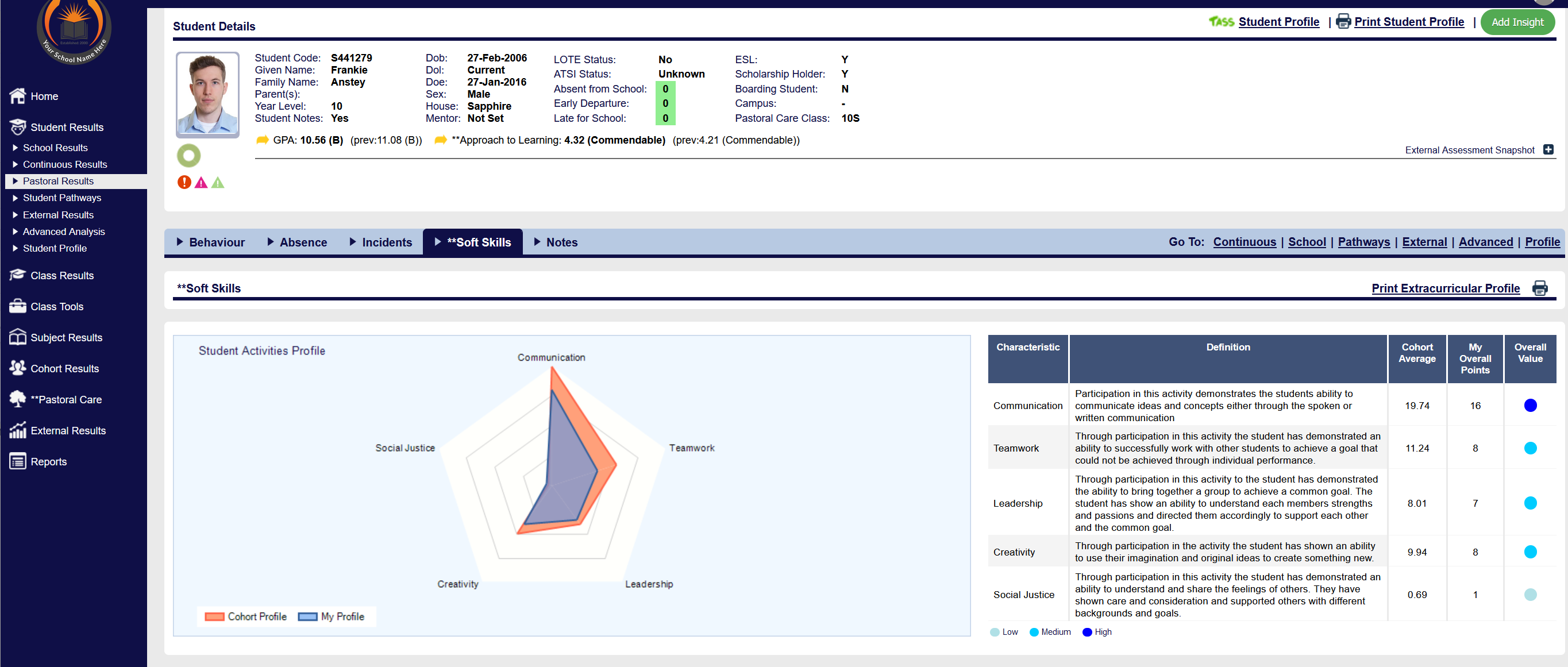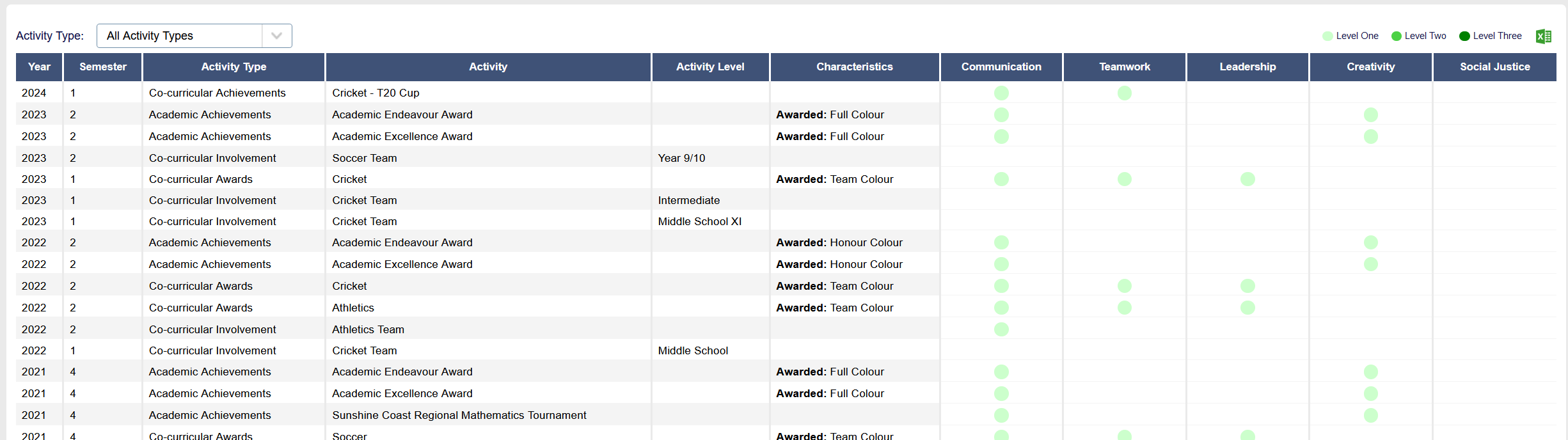 Teachers can see the soft skills students have acquired from their extra-curricular activity.